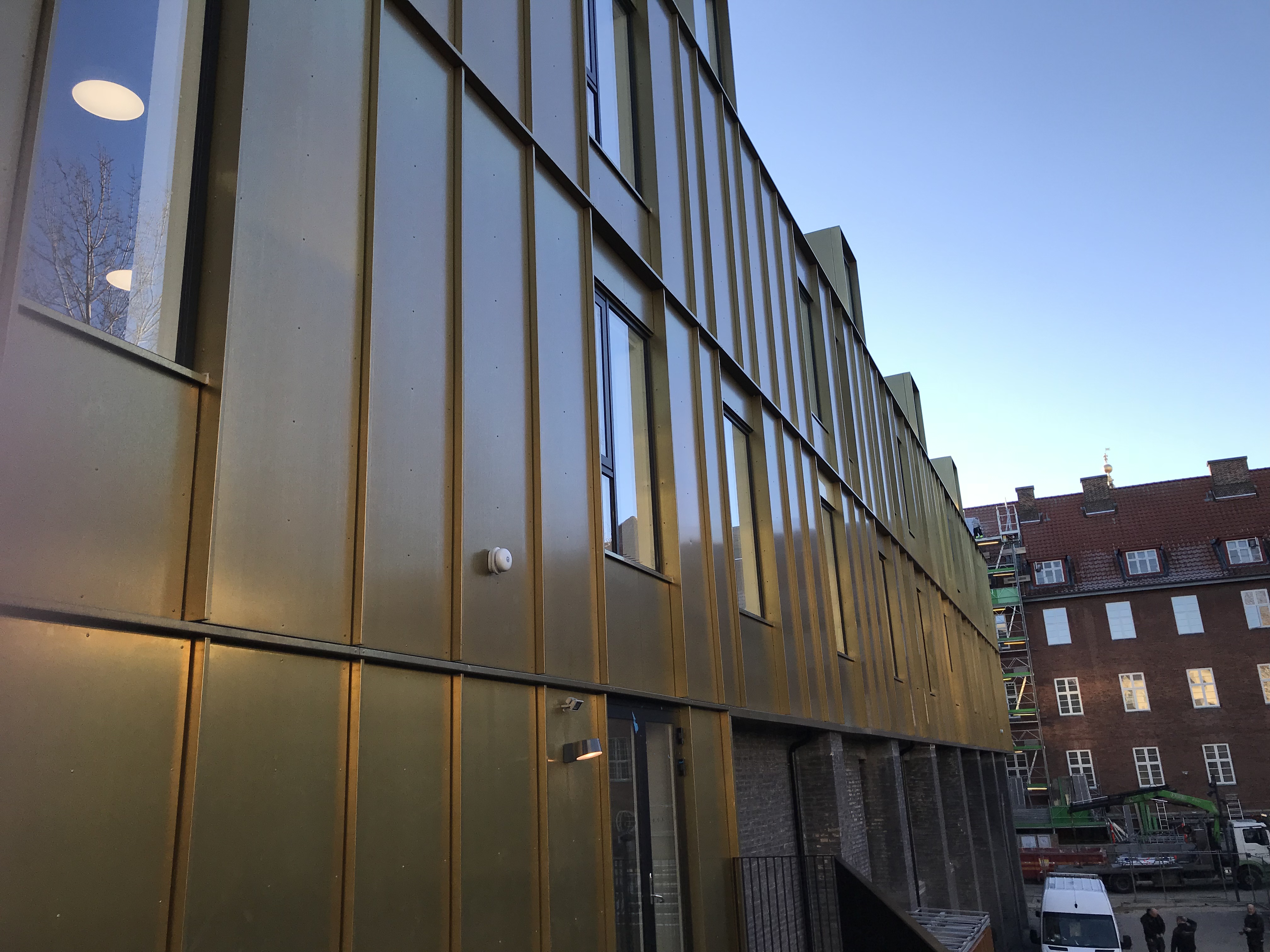 Christianshamns Skola är belägen i centrala Köpenhamn och har funnits sedan 1950. Mellan 2017 - 2019 genomfördes en ombyggnation och utveckling av skolan. En av förändringarna som gjordes är att skolan nu har en fantastisk fasadbeklädnad bestående av gyllene TECU BRASS BOND fasadplåt som har monterats på ytbehandlade aluminiumprofiler.
