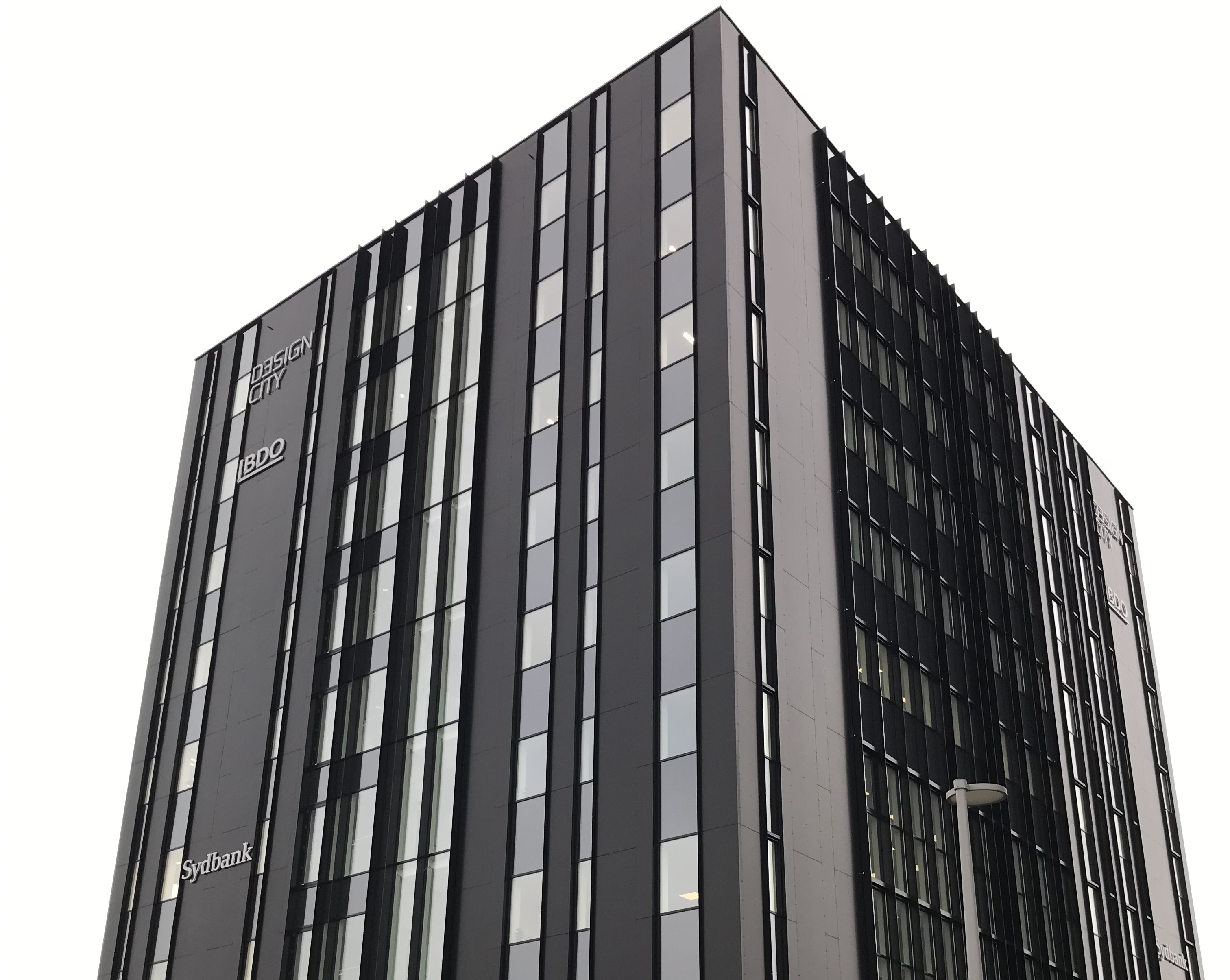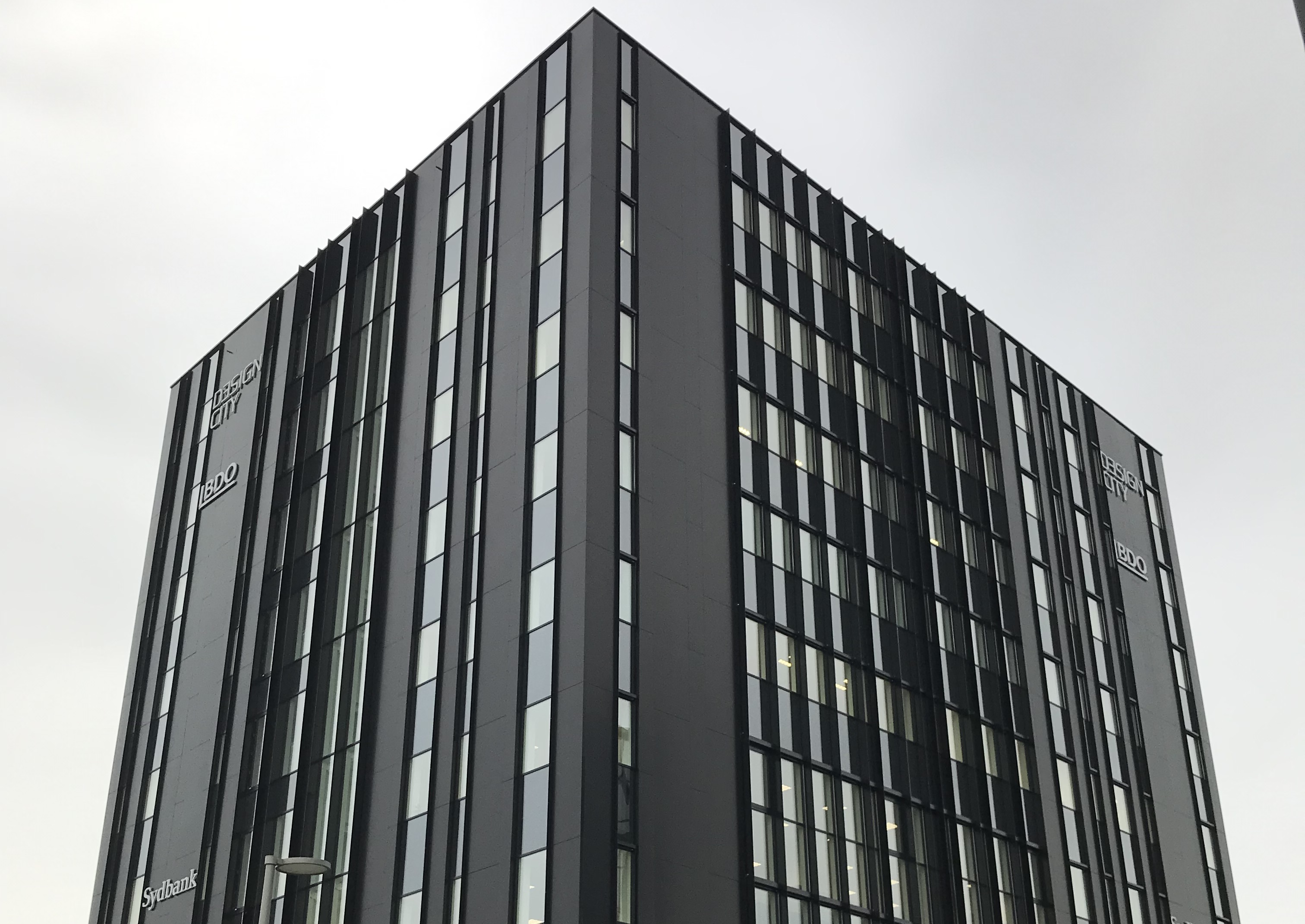 Fasaden på Design City Kolding är utförd i stilren svart Alucobond.
