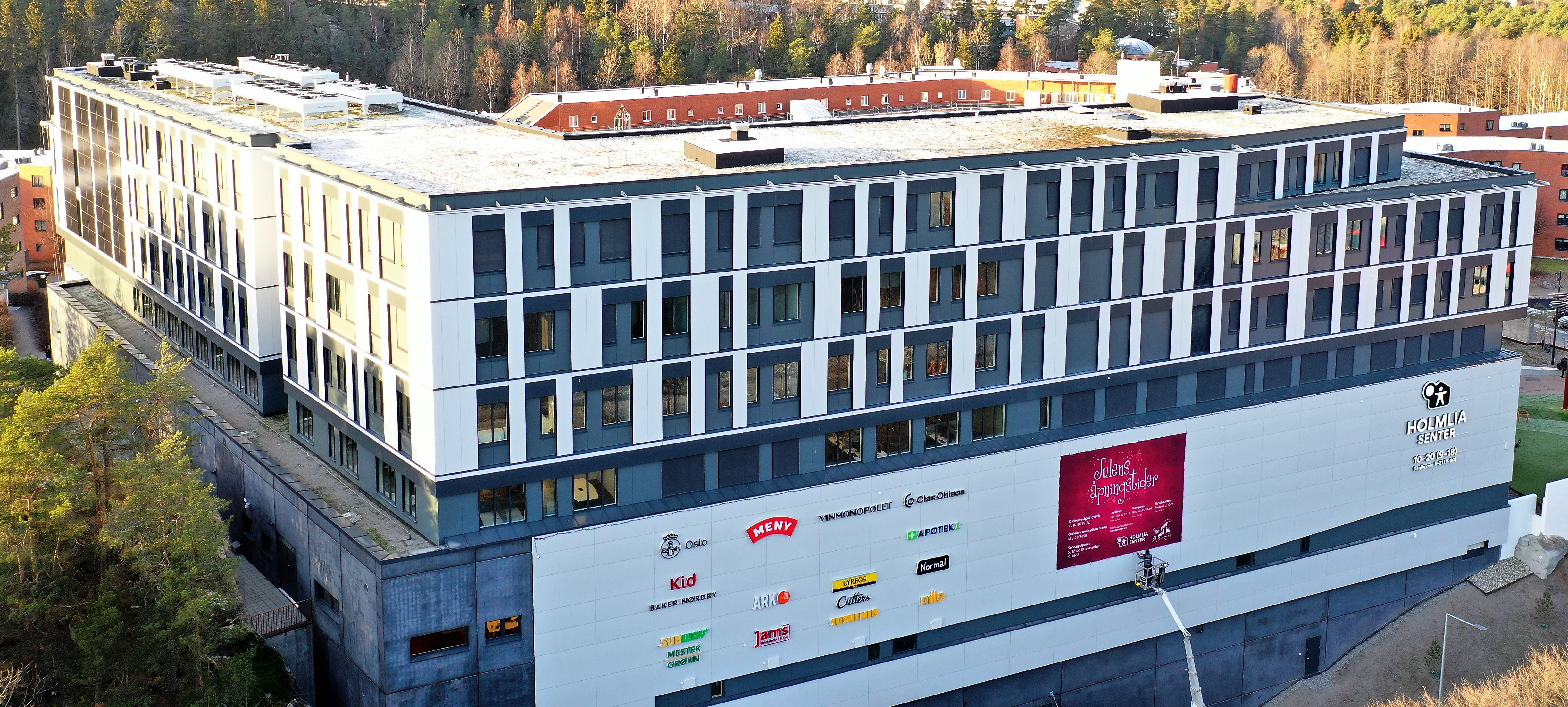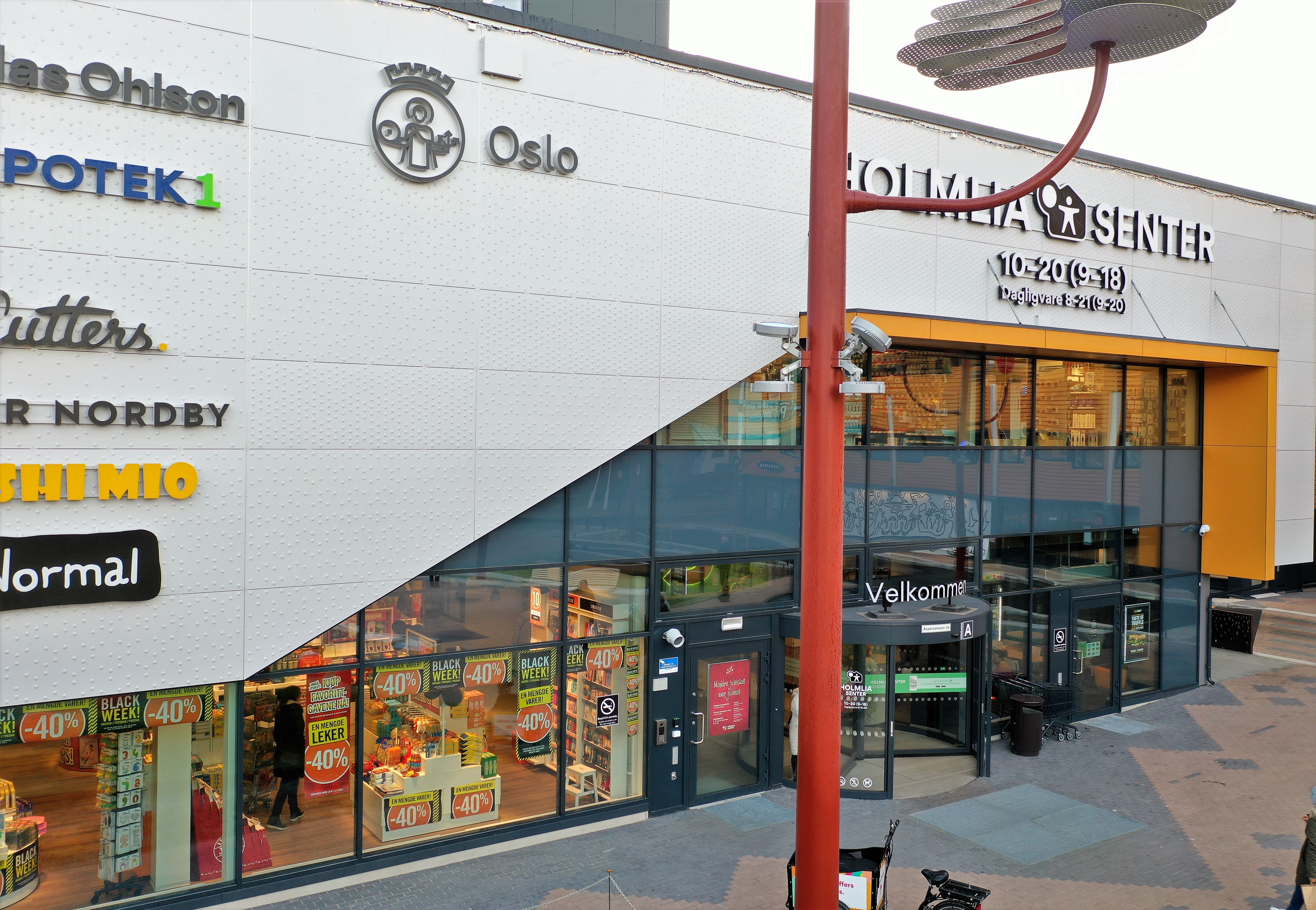 Till detta köpcentrum i Oslo har Alumeco Norge levererat skivor, både plana och präglade i 3 olika kulörer från STACBOND.