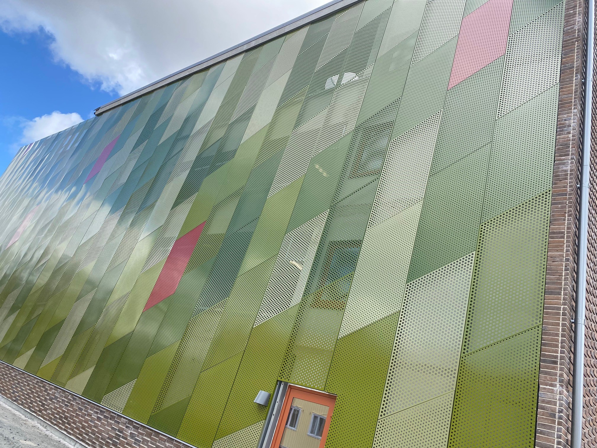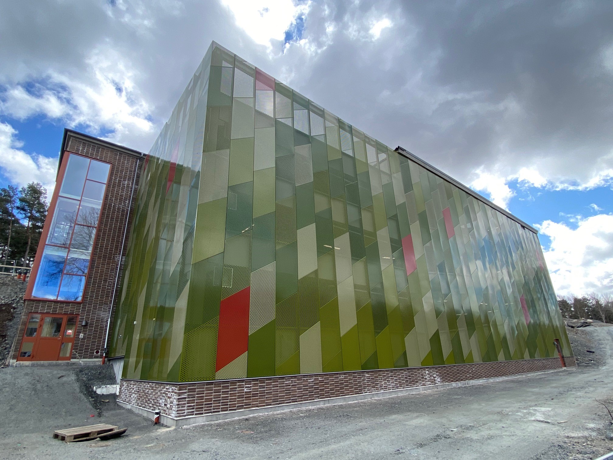Till detta projekt har vi levererat ca 30 ton EN AW-1050A plåt till vår kund RMIG Sweden som har perforerat. Deras kund Töreboda pulverlackering har i sin tur pulverlackerat plåten till önskade nyanser. Montering utförd av Hisingestads bleck & plåt.