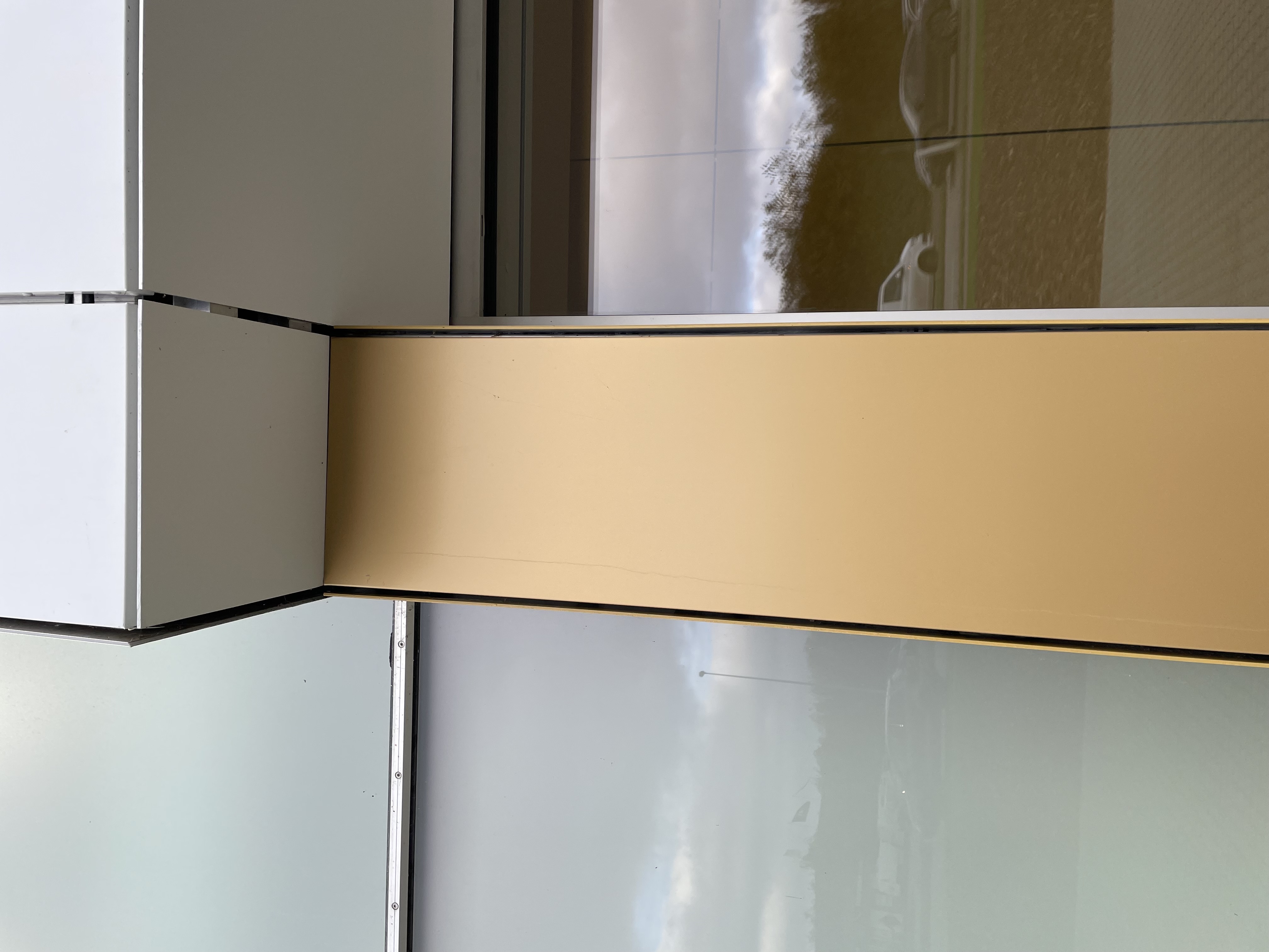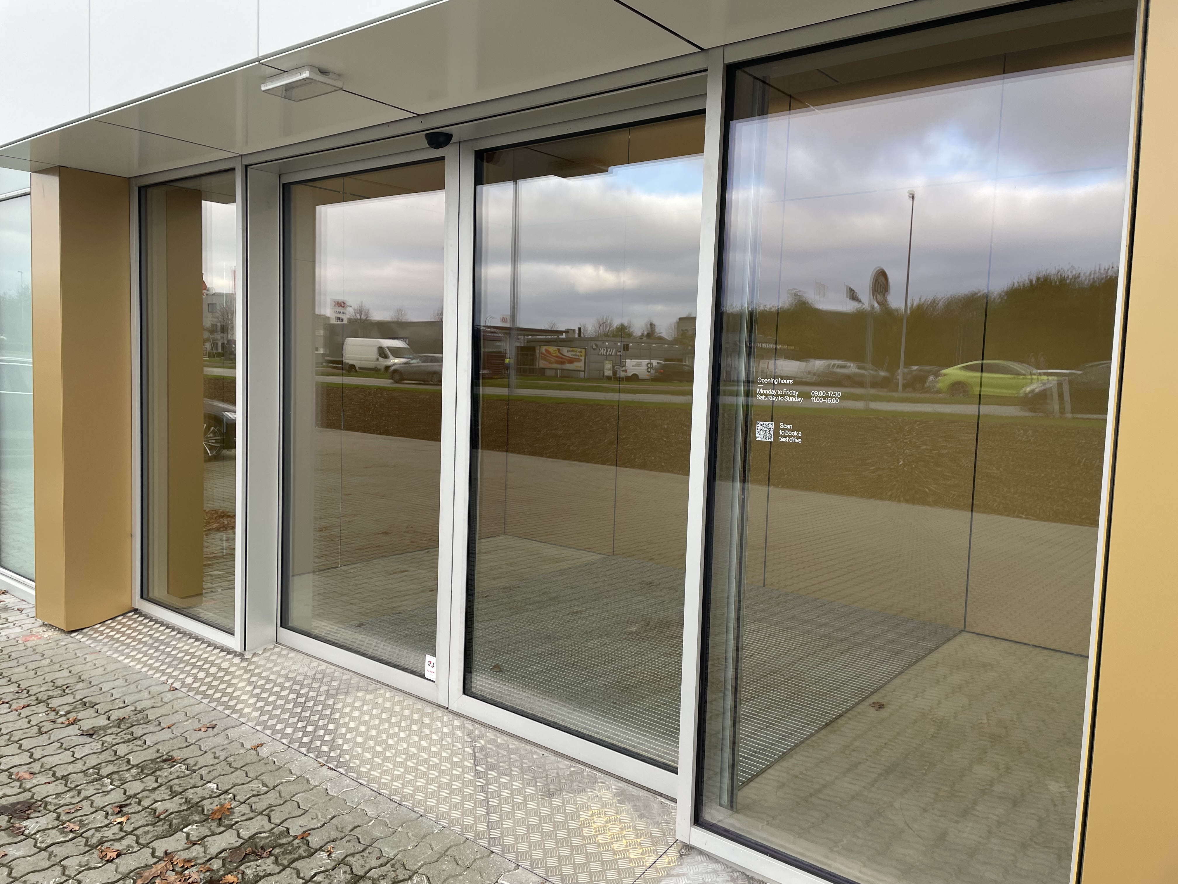 Showroomet är utformat i en minimalistisk och rå look eftersom det är bilarna som ska dra till sig uppmärksamheten. Därav är fasaden till större del klädd i vita STACBOND-kassetter i färgen Traffic White. Entrén är snyggt inramad med kassetter i färgen Gold Metallic.