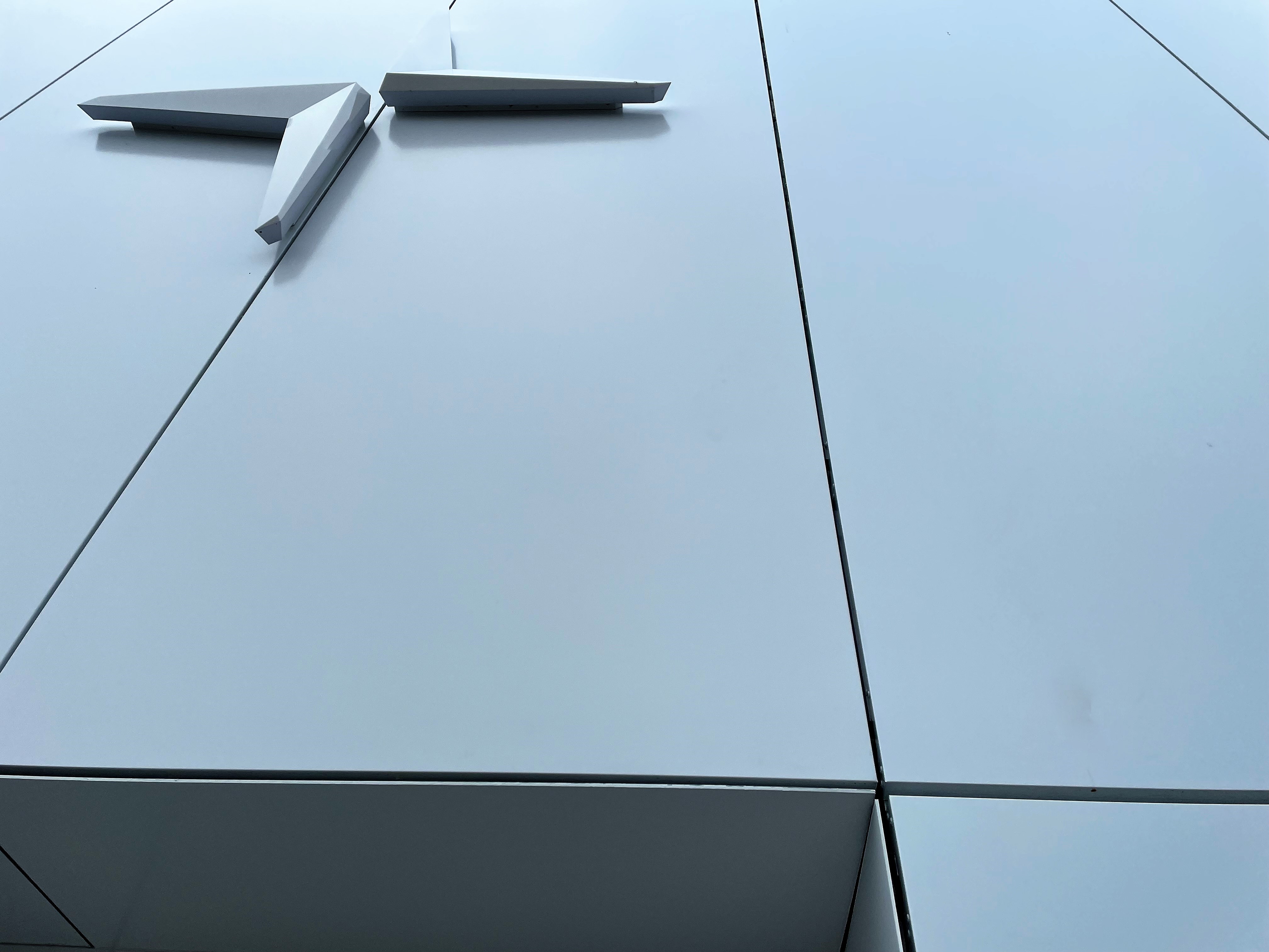 Det minimalistiska utseendet framhävs av att de 4800mm stora fasadkassetterna sträcker sig i ett enda stycke över hela överdelen på fasaden. Just det är en fördelarna med STACBOND säger Alumecos projektkonsult, Mads Bomholdt Bach: