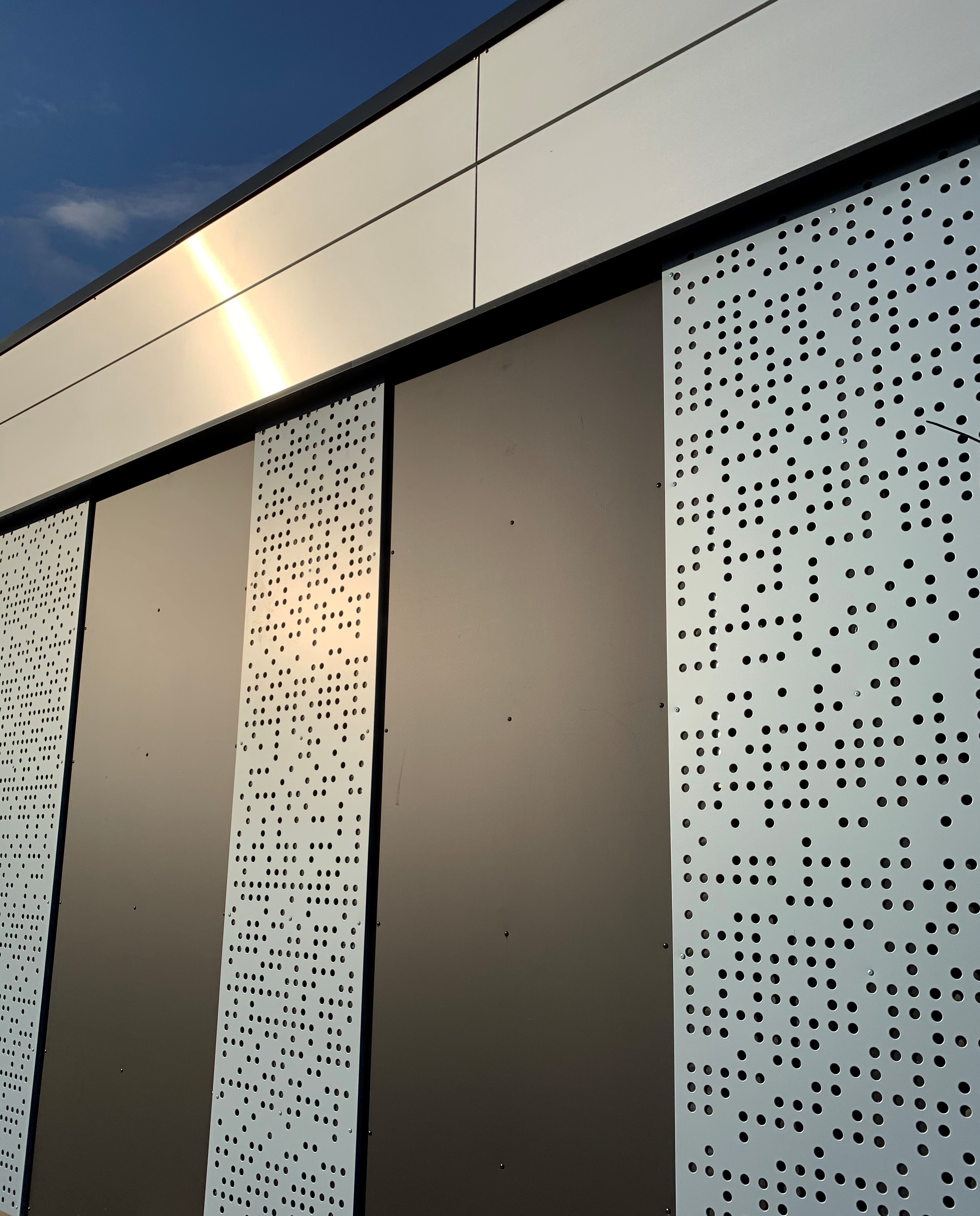 Alumeco har levererat kassetter med dold infästning samt delvis levererat perforerat plåt.