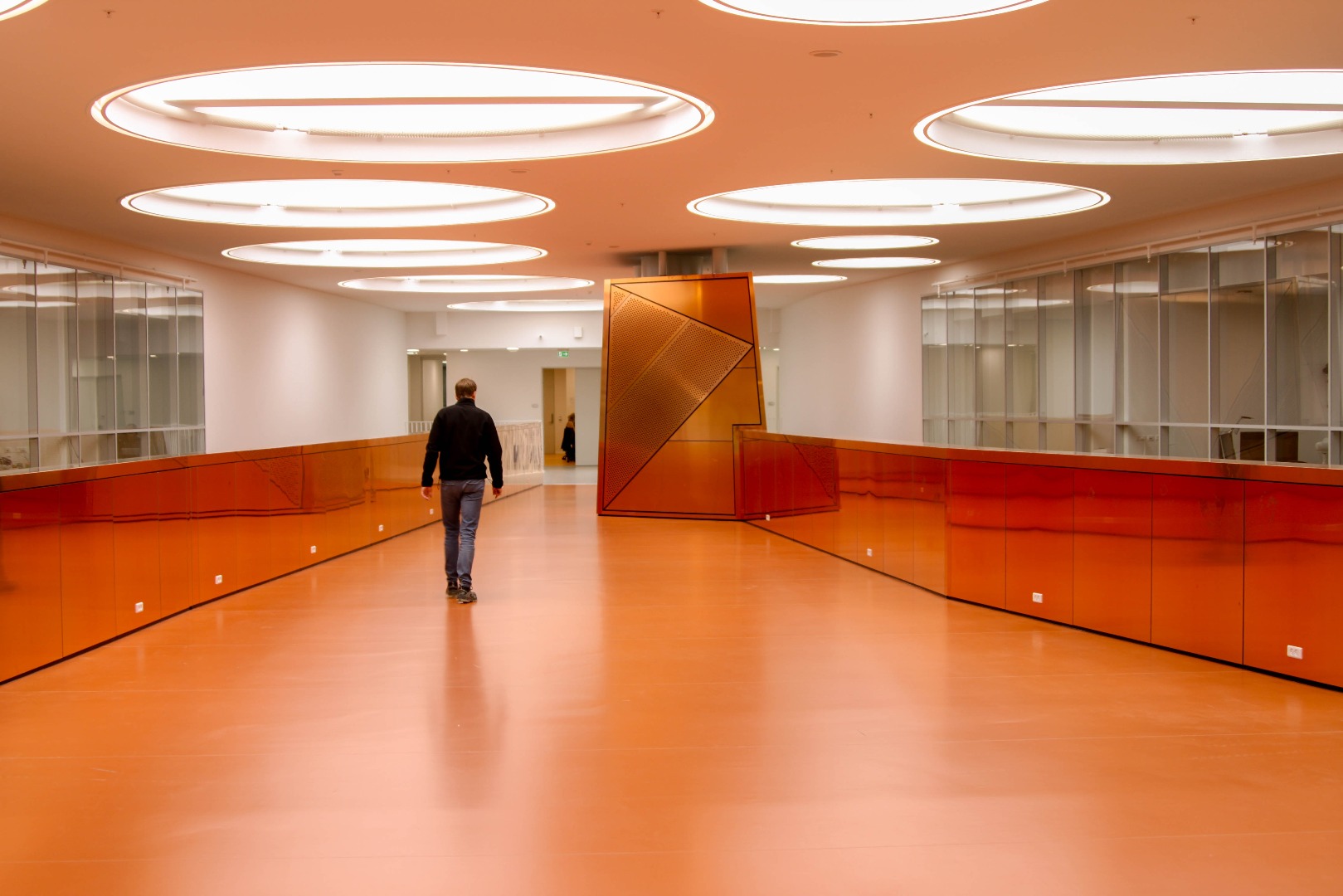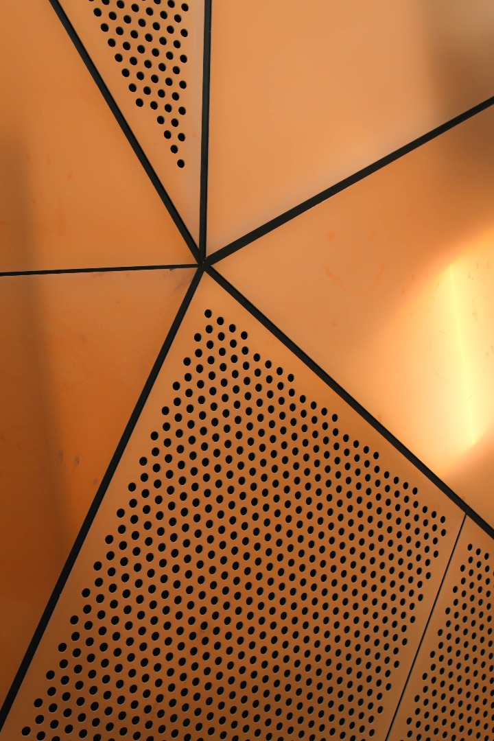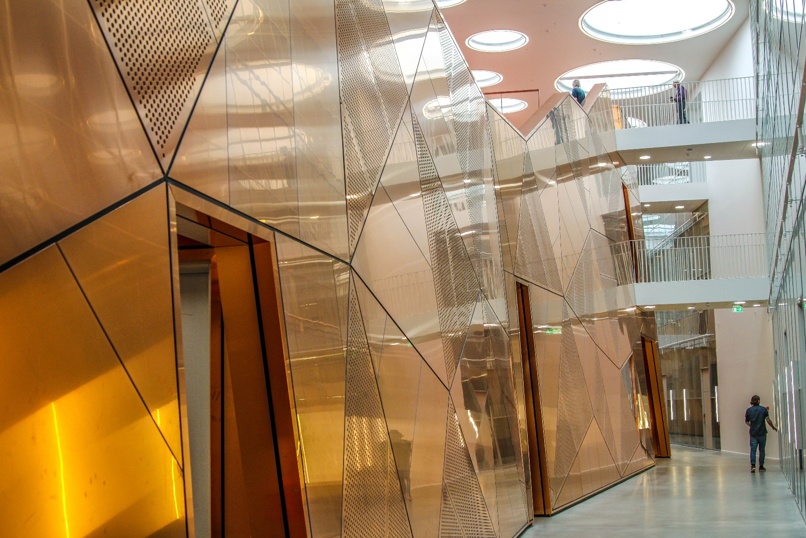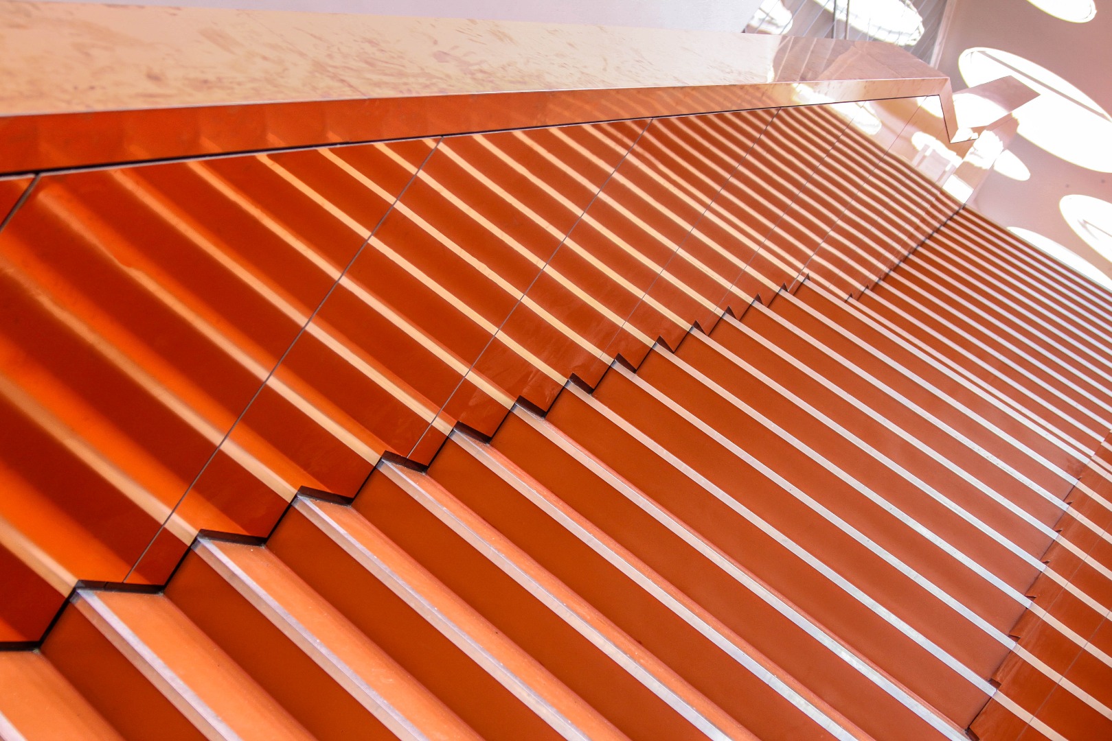Som beklädnad av 'Trappan' har TECU® Bond Classic använts: kompositmaterialet TECU® Bond tillhandahåller samma estetiska egenskaper som TECU®-ytorna, men kan skäras i önskad storlek och installeras över stora ytor på ett mycket snabbare och enklare sätt. TECU® Bond är godkänt för fasadkonstruktioner.